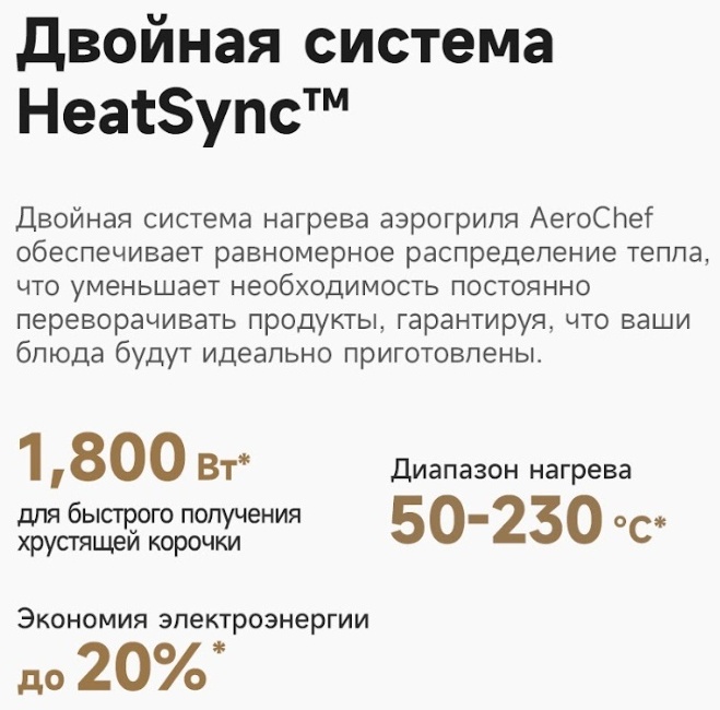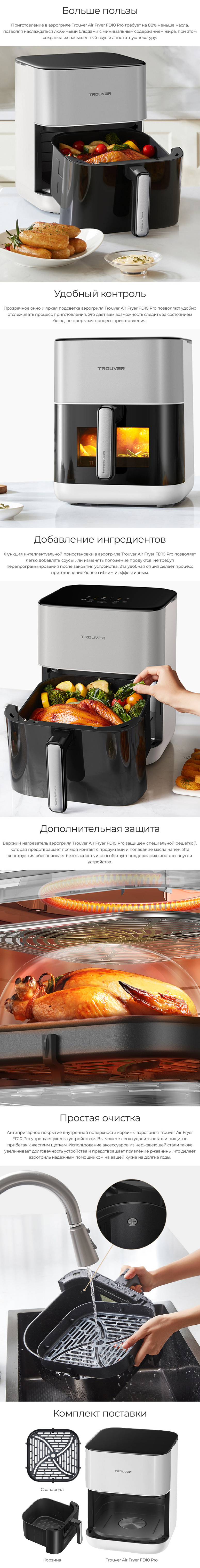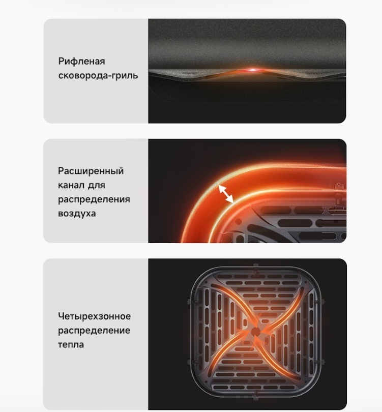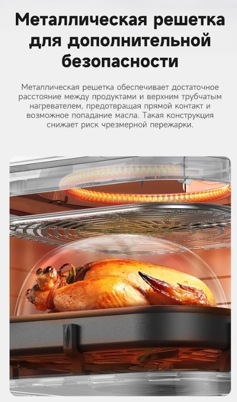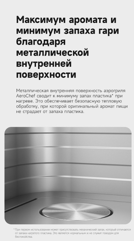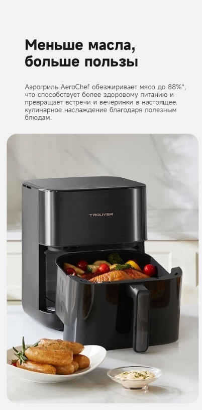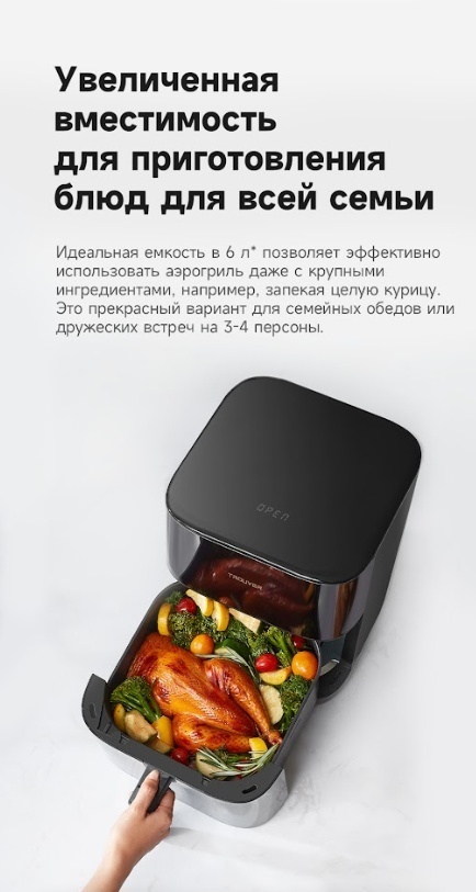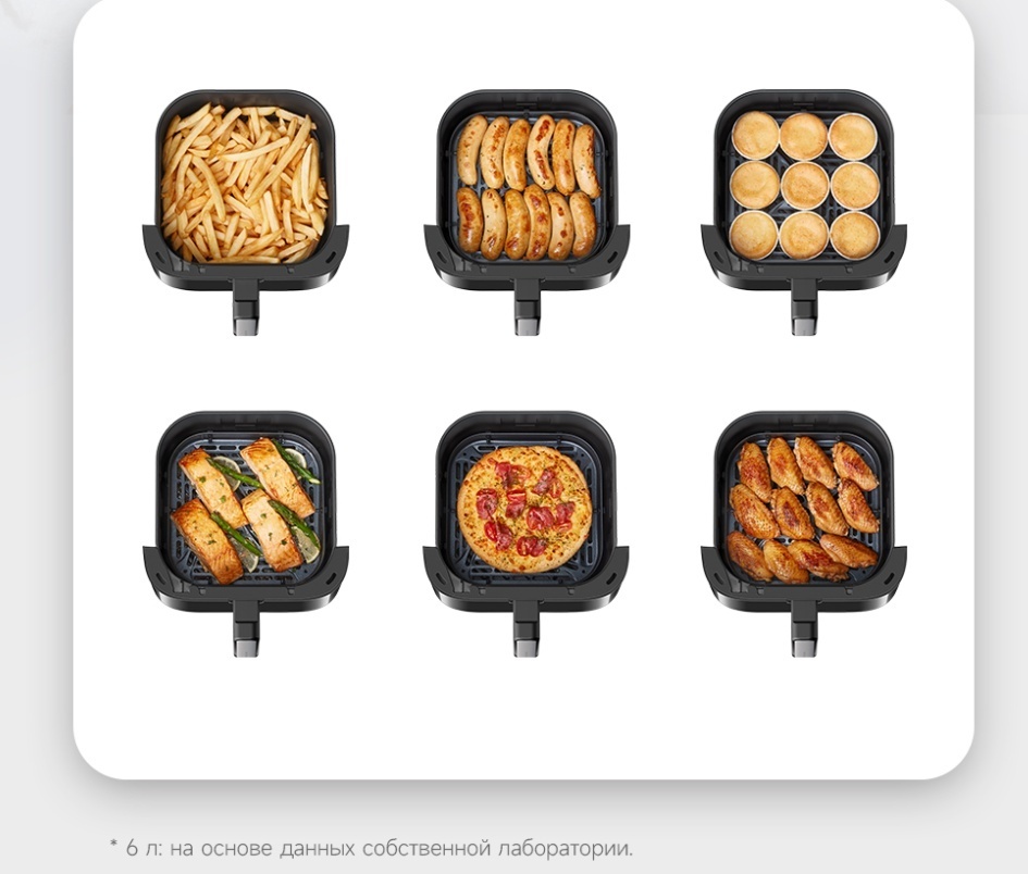 Очень довольна приобретением! При катастрофической нехватке времени, это просто находка! Объём 6 литров хватает на семью из трёх человек. Всё приготовленное в этом аэрогриле получается сочным и ароматным! Главное приспособиться, удобно контролировать процесс через стеклянное отверстие, подсветка в помощь! Приобретением довольна на все сто! Приготовила фри и филе курицы, получилось супер вкусно, внук доволен, я счастлива! Спасибо магазину и Каспи! Из недостатка, запах пластика при нагревании, но еда не пахнет, потому что чаша металлическая, надеюсь со временем пройдёт.
