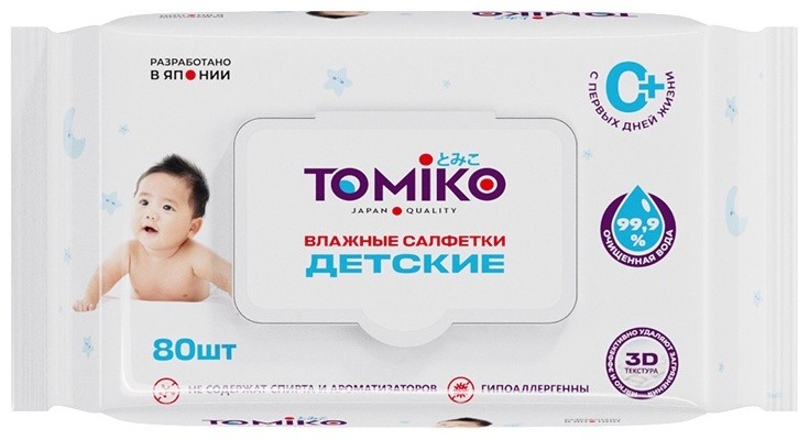 Детские влажные салфетки TOMIKO 80 шт в уп.