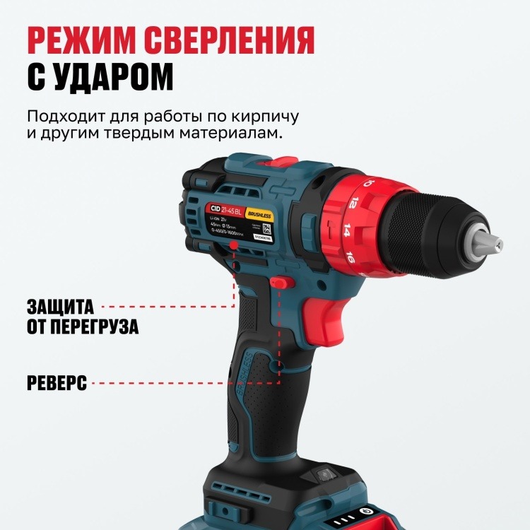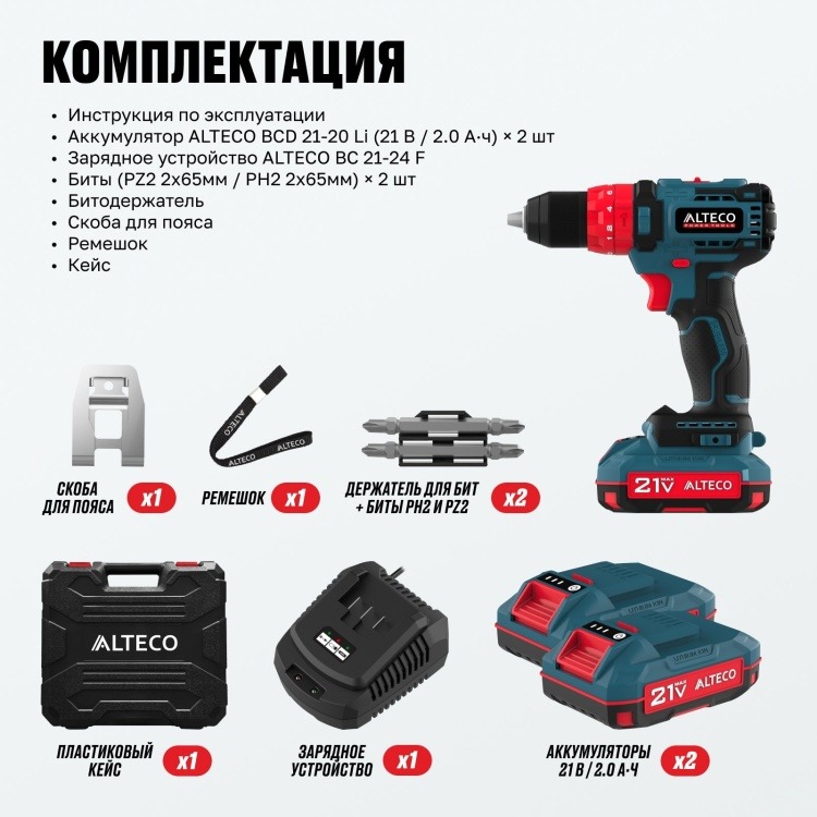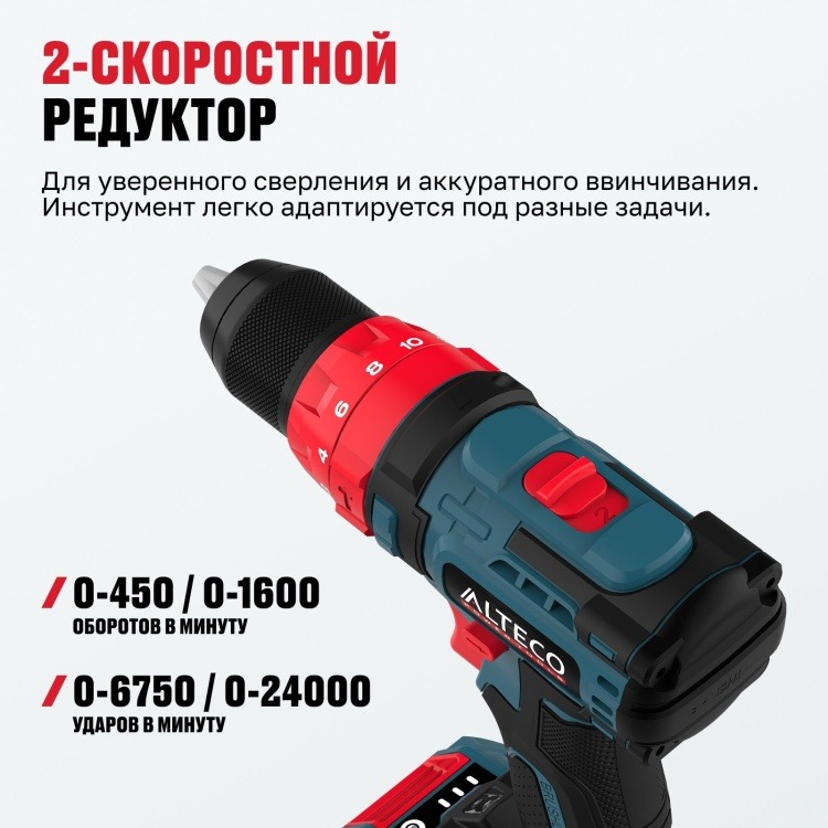 Дрель-шуруповёрт бесщеточная ударная ALTECO CID 21-45 X2 BL