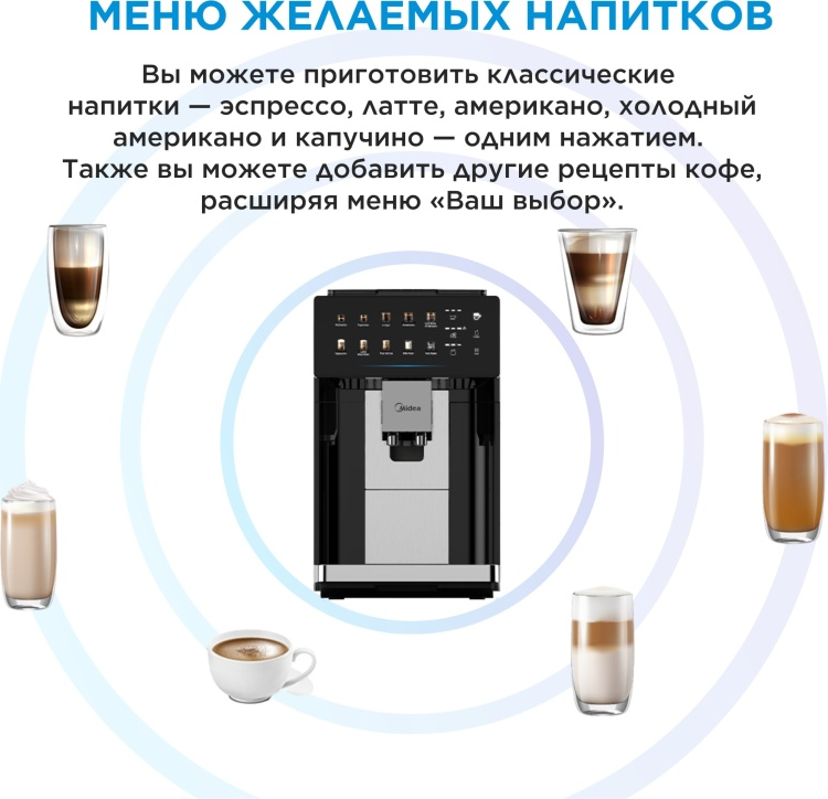 Кофемашина Midea MA-FACM1004A2 черный, стальной