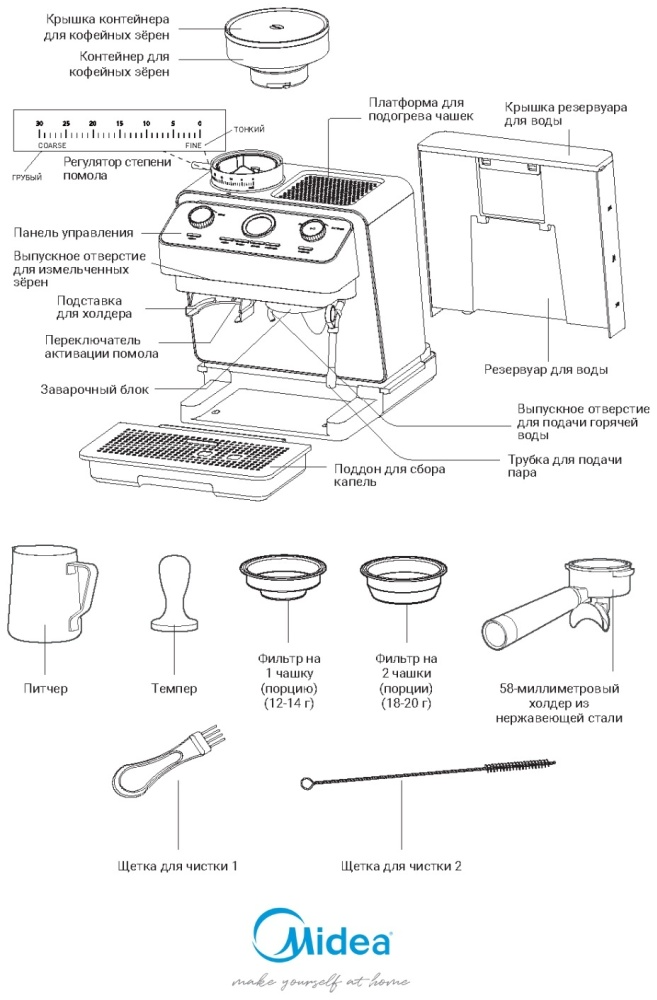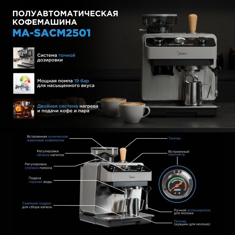 Кофемашина Midea MA-SACM2501 серый