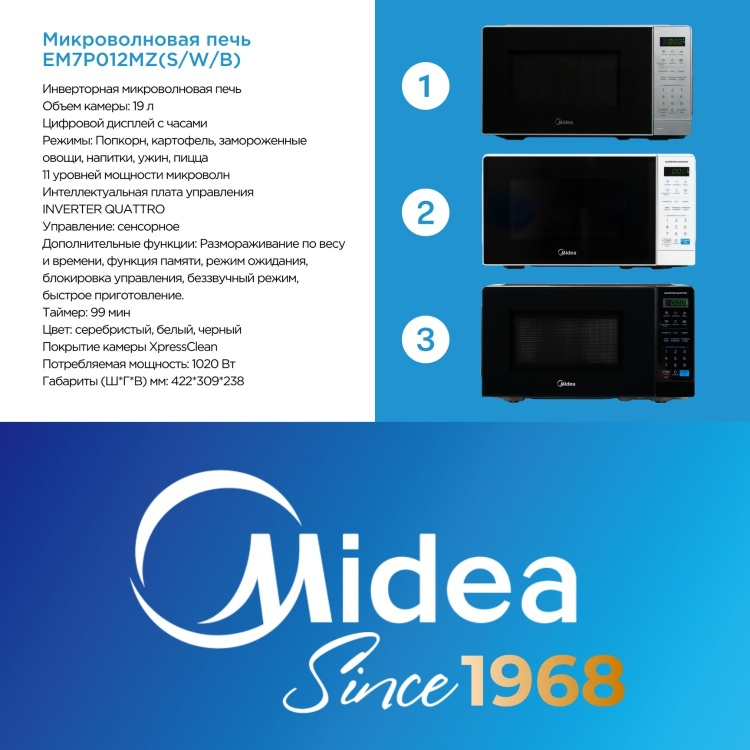 Микроволновая печь Midea EM7P012MZ(S) Серебристый