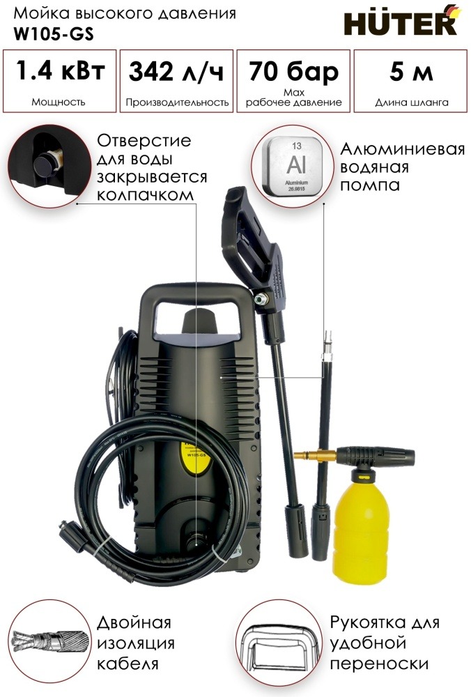 - Шланг Способ хранения: держатель, длина 5 м.(Шланг подачи воды в комплект не входит)