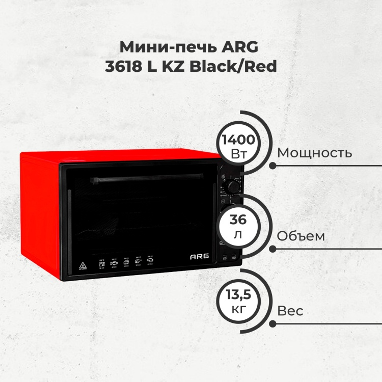 Настольная электропечь ARG 3618 L Черный-красный