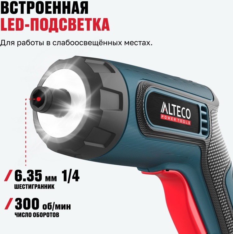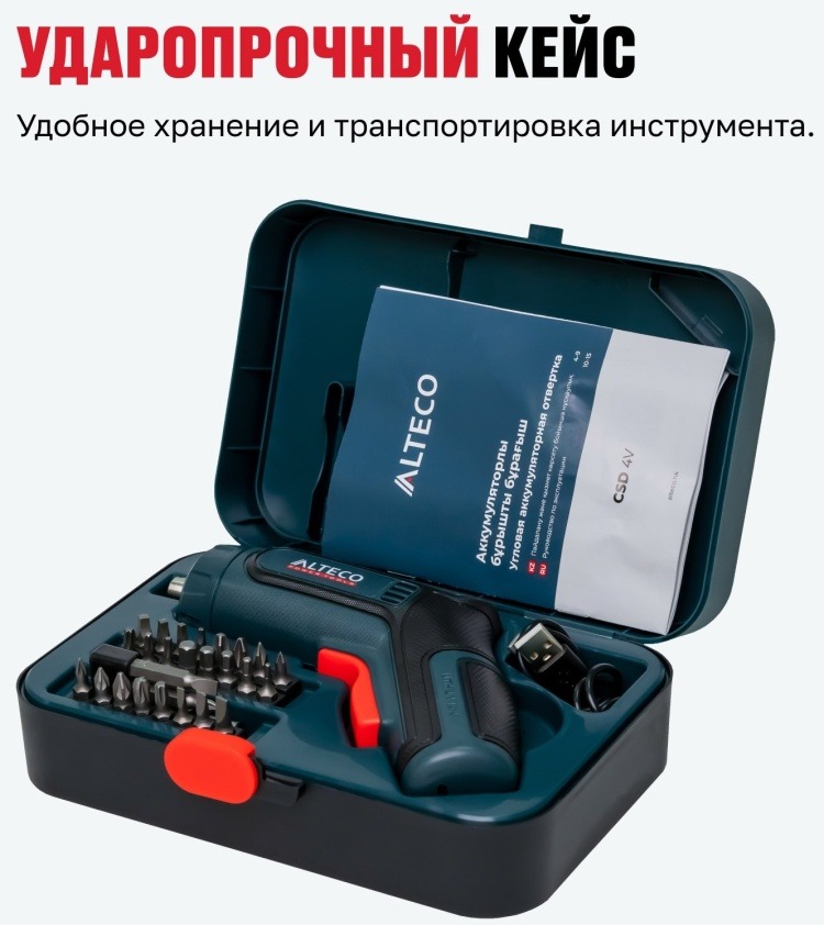 Отвёртка аккумуляторная угловая ALTECO CSD 4V