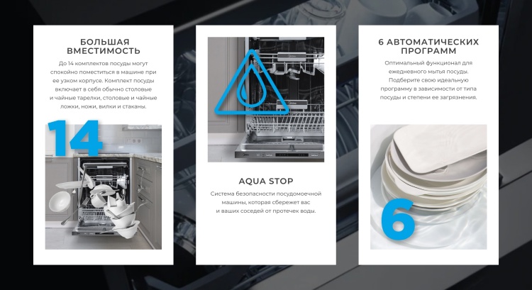 - Специальные программы и функции автоматические программы, экономичная программа для слабозагрязненной посуды, деликатная программа для мытья хрупкой посуды, половинная загрузка