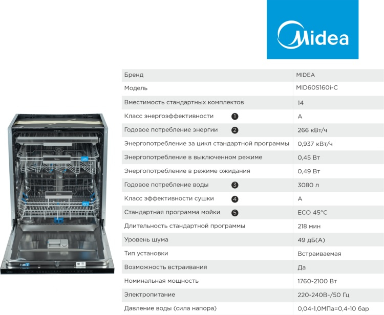 Посудомоечная машина Midea MID60S160i-C