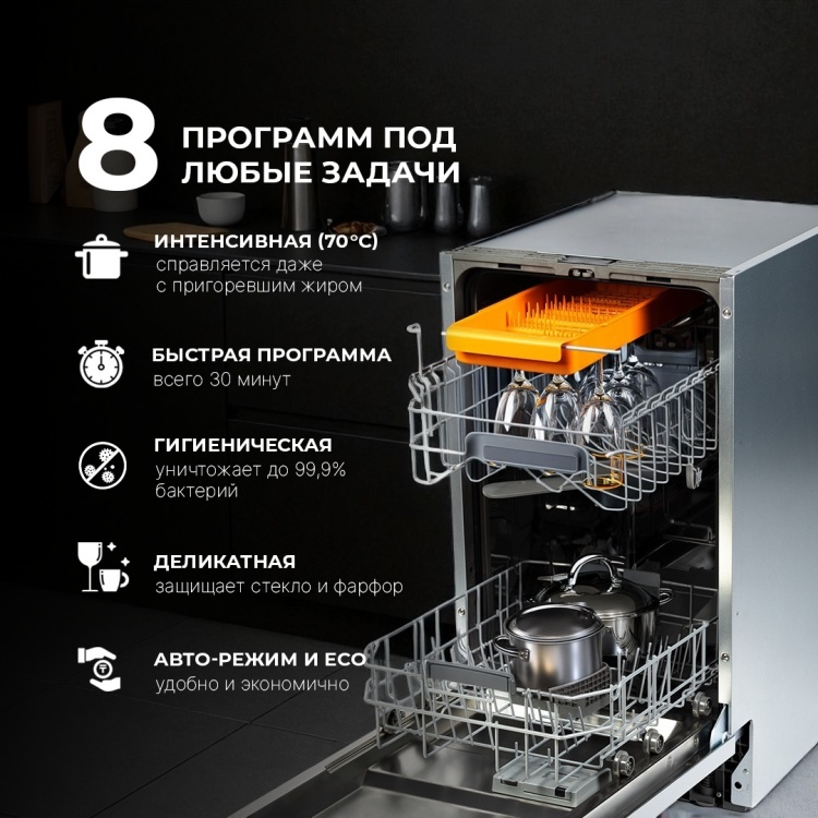 - Специальные программы и функции экономичная программа для слабозагрязненной посуды, программа для кастрюль и сковород, деликатная программа для мытья хрупкой посуды, мытья хрупкой посуды , программа гигиена , режим предварительного замачивания