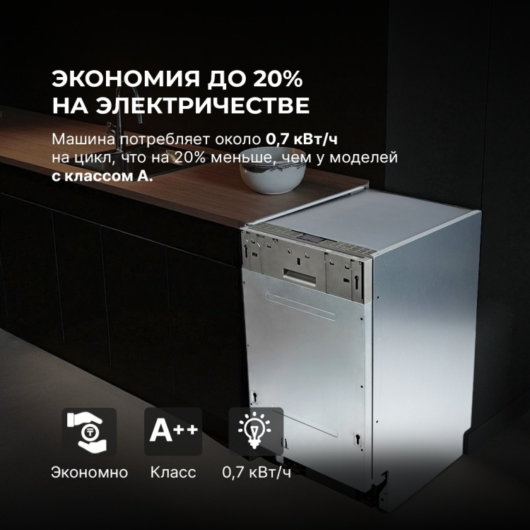 - Стандартные программы мойки интенсивная программа для сильнозагрязненной посуды, экспресс-программа (быстрый цикл), авто: 35-45°С