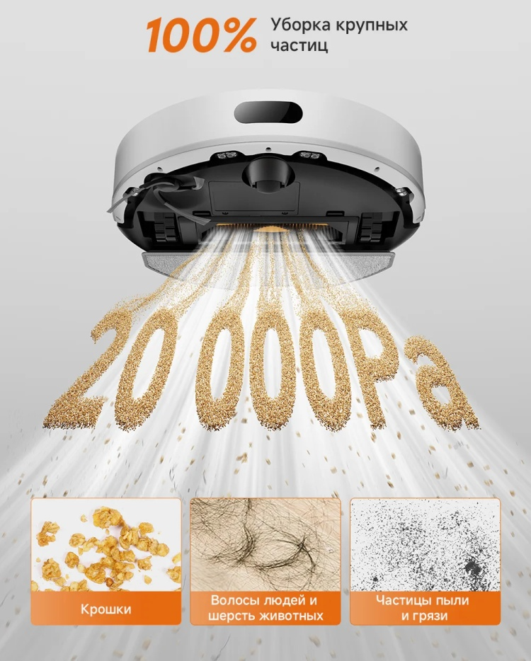 - Режимы и функции построение карты помещения, уборка по расписанию, автоматический возврат на зарядную станцию, обход препятствий