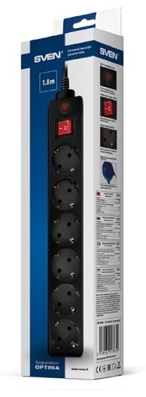 Сетевой фильтр SVEN Optima 6 Black 1.8 м