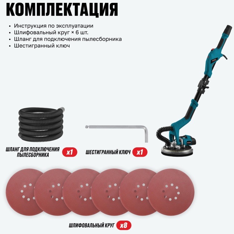 - Комплектация Инструкция по эксплуатации , ключ, шлифовальный круг