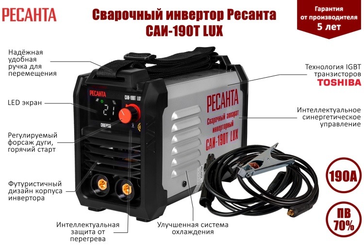 Сварочный аппарат инверторный Ресанта САИ-190Т LUX