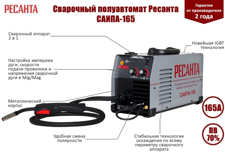 Сварочный полуавтомат Ресанта САИПА-165С MIG 5в1