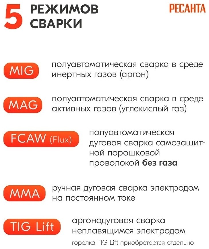 - Типы сварки полуавтоматическая сварка (MIG/MAG), ручная дуговая сварка (MMA)