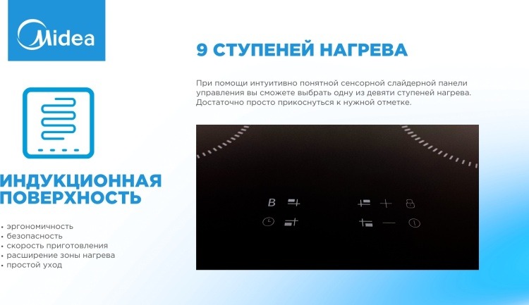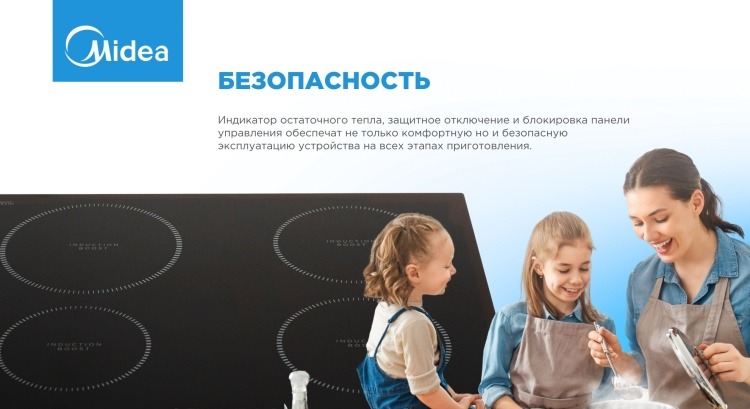 - Безопасность защитное отключение , индикатор остаточного тепла , кнопка блокировки панели