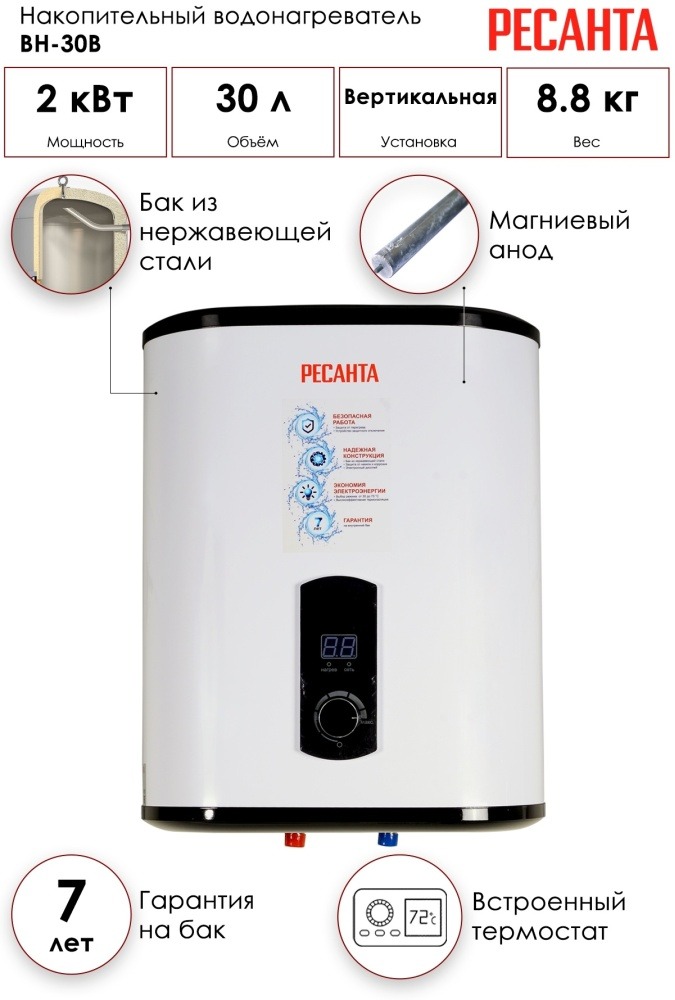 Водонагреватель накопительный Ресанта ВН-30В