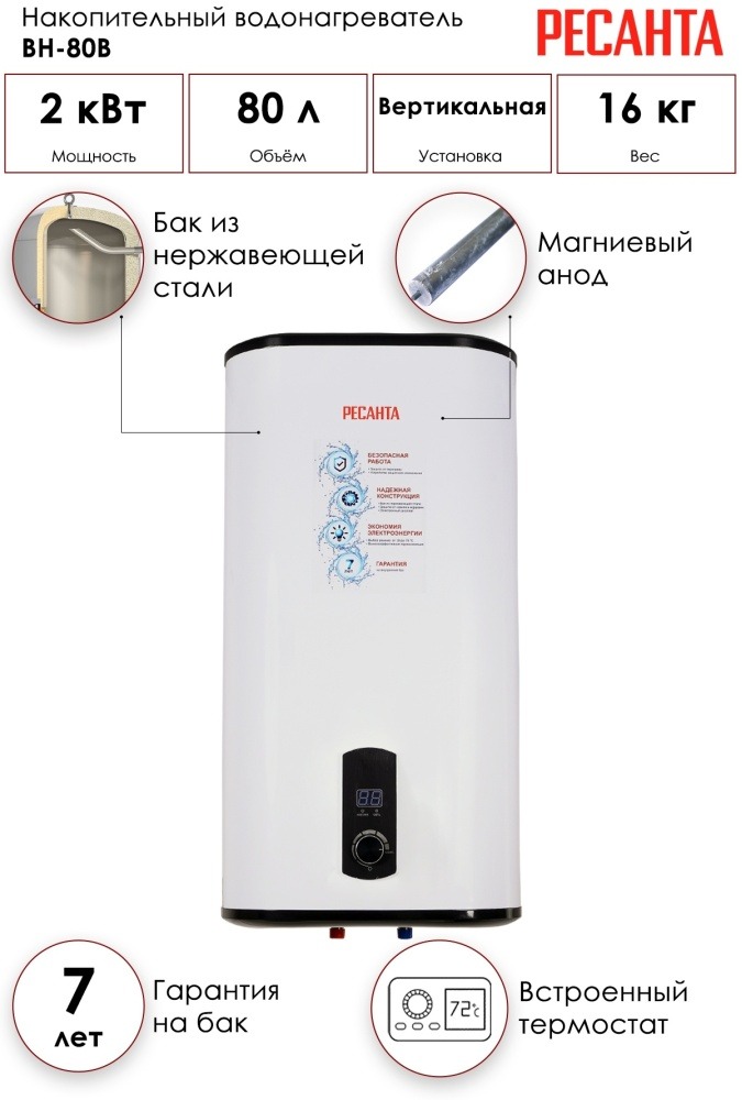 Водонагреватель накопительный Ресанта ВН-80В