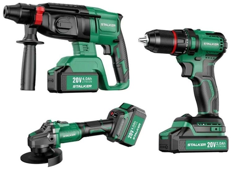 Набор аккумуляторного инструмента STALKER Kit (AG20-125 Li BL+D20 Li+RH20 Li BL)