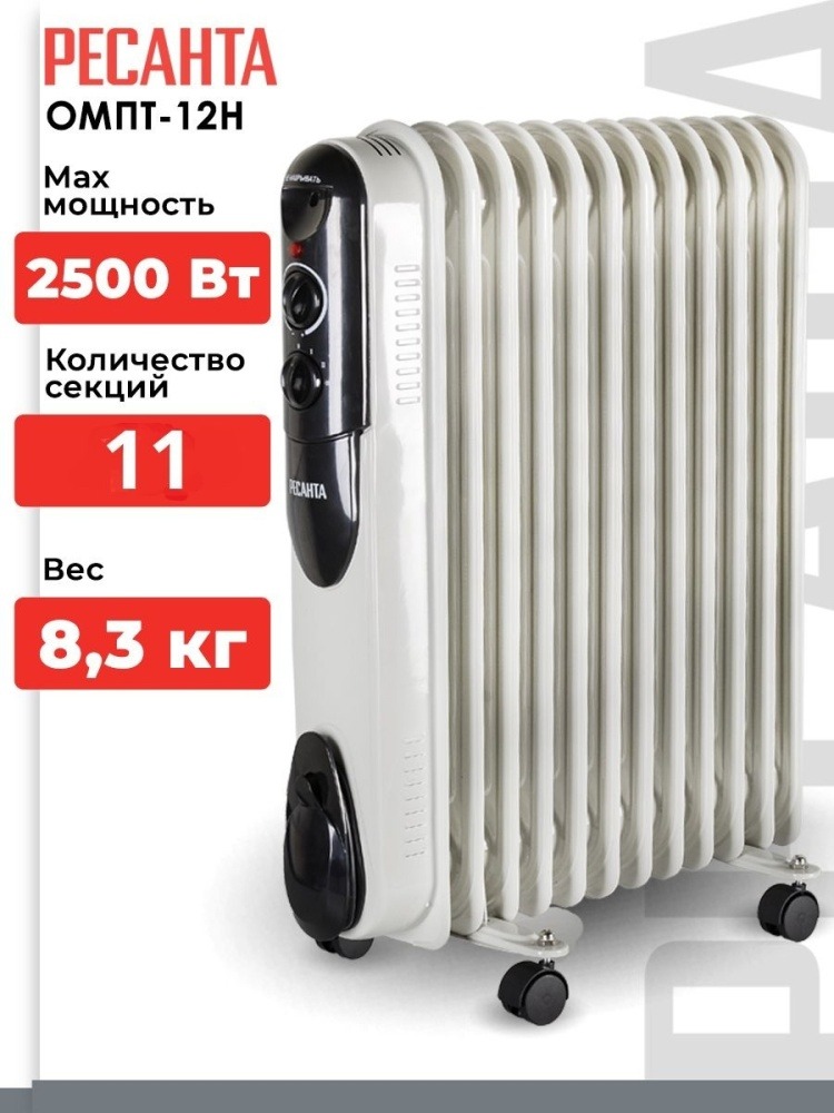Масляный радиатор Ресанта ОМПТ-12Н белый