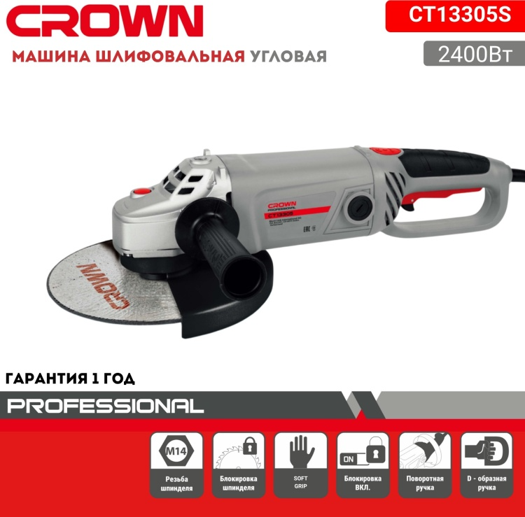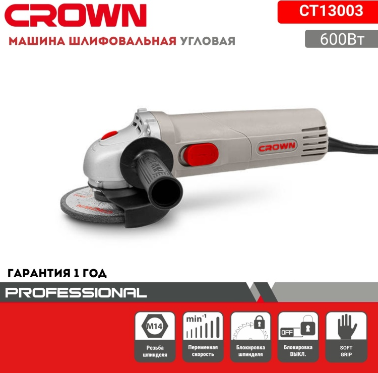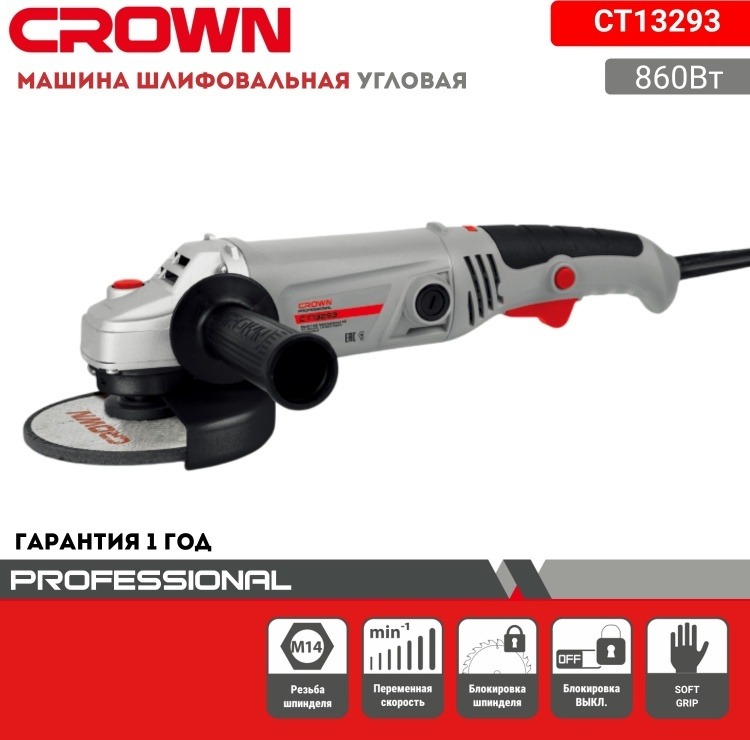 Машина шлифовальная угловая CROWN CT23008-125HX