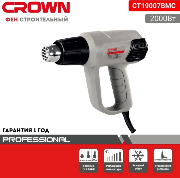 Фен строительный CROWN CT19007 ВМС